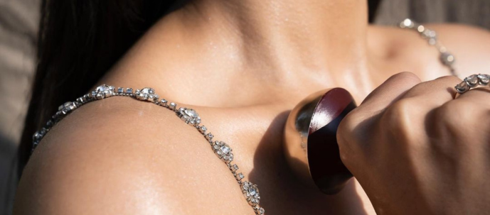 For best results, I recommend using this massage tool daily for 5 to 7 minutes. Dot your favorite oil or serum onto a clean face and neck, then use the following movements to firmly glide the kansa dome over your skin: